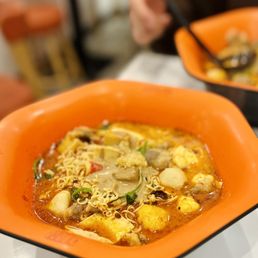 You build your own bowl here. First ,you grab your protein/veggies. Then, you choose your soup. I recommend the Tom Yum. I really liked the variety of options. Service was fast too!